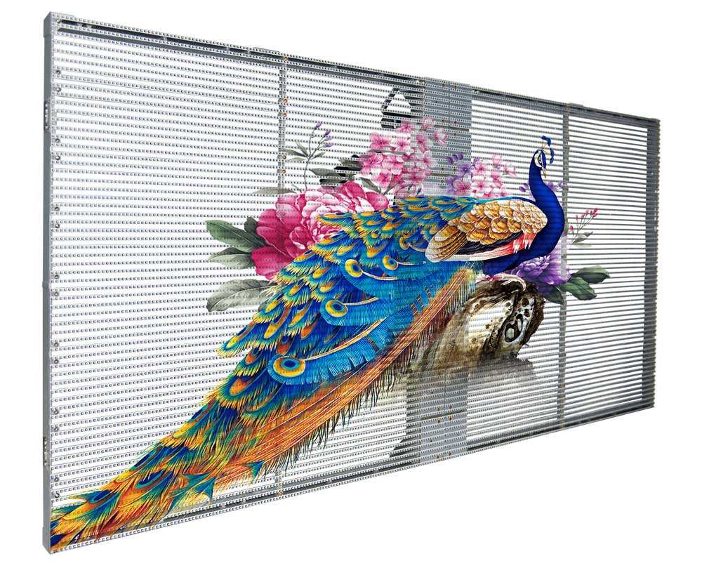 透明LED顯示屏近年來備受關(guān)注,其受市場歡迎的火爆程度似乎不亞于小間距。LED透明屏是行業(yè)對燈條屏的微創(chuàng)新,對貼片制造工藝、燈珠封裝、控制系統(tǒng)的都進(jìn)行了針對性的改進(jìn),加上鏤空設(shè)計(jì)的結(jié)構(gòu),通透性大為提高。在眾多透明顯示技術(shù)中LED透明屏是唯一不受尺寸面積設(shè)計(jì),可以任意大。