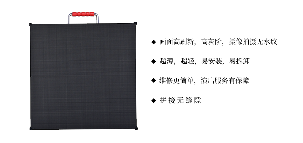 租賃LED顯示屏產(chǎn)品需要根據(jù)使用的地點、舞臺場景需要,頻繁的裝卸和反復使用,所以對于產(chǎn)品的便攜性和產(chǎn)品的耐用性以及安裝人員的專業(yè)性要求較高。另外,一般租賃屏避免不了運輸環(huán)節(jié),所以也要具備較高的防震性能。那么,為了更好地滿足普通租賃用戶使用和便捷的安裝,和通佳從以下幾個方面著手: