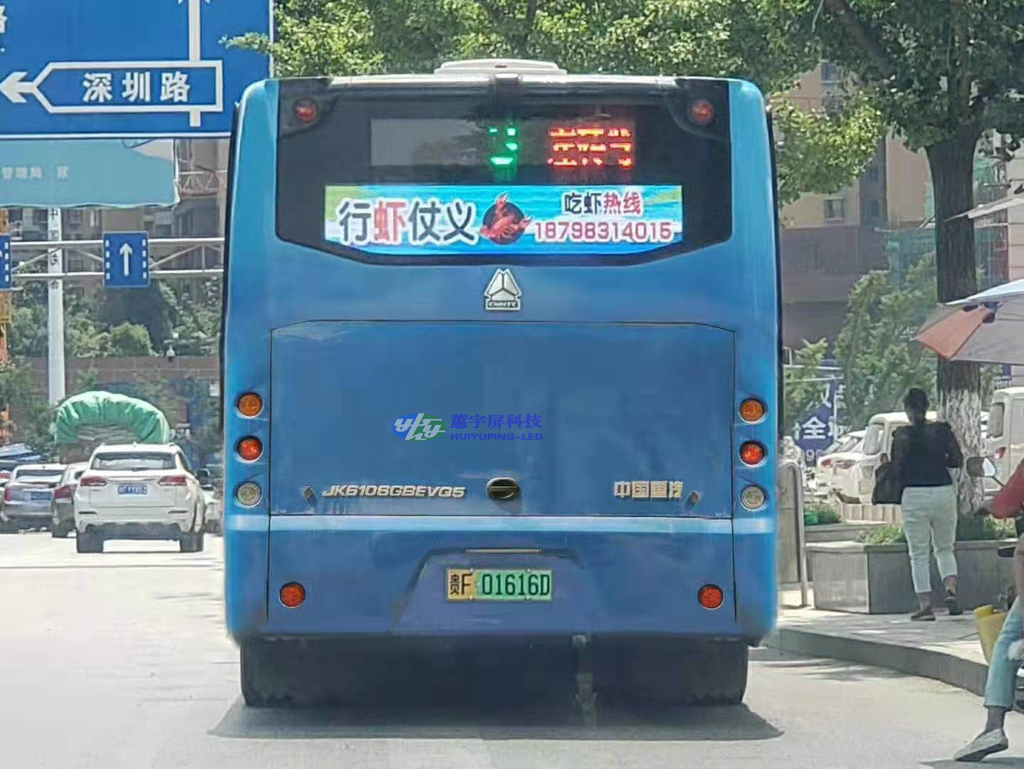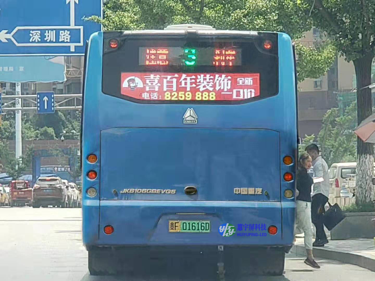 您當(dāng)前位置:主頁(yè)  > 全彩LED顯示屏展示  > 車載LED顯示屏  > HY公家車車尾LED全彩顯示屏