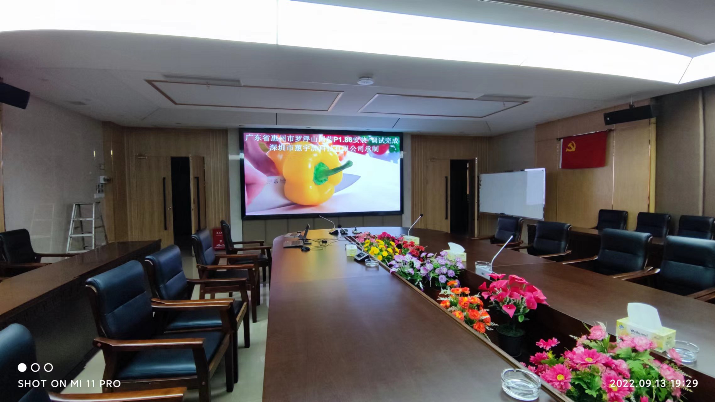 惠州羅浮山會議室p1.86小間距LED顯示屏完成,產品高清高刷,畫面逼真,產品性價比高,終身維護。